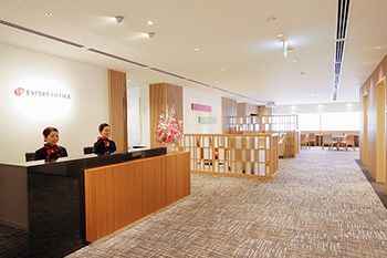 レンタルオフィスと一口に言っても、サービス水準は会社によって大きく異なる。コンパクトでありながらも大規模オフィスと同等の機能を追求したのがエキスパートオフィスである。共用のラウンジは広々としており高級家具を配置。各執務室にもオフィス家具を備え、二重、三重のセキュリティー体制を設ける。