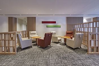 第一号は、虎ノ門にある日総第23ビルだ。ザ・リッツ・カールトン・サンフランシスコホテルの開発経営を手がけた経験も生かし、通りに面した1階はコンビニやコーヒーショップなどはあえて入れず、スタイリッシュなラウンジになっている。「ビルの収益性を考えればテナントを入れたほうがプラスですが、1階のフロアは会社の顔。来訪者との面談や、ワーカーの方々のリフレッシュスペース、また1人でクリエイティブな発想を巡らす場所として提供。まさに誇りと愛着を感じていただくスペースです」