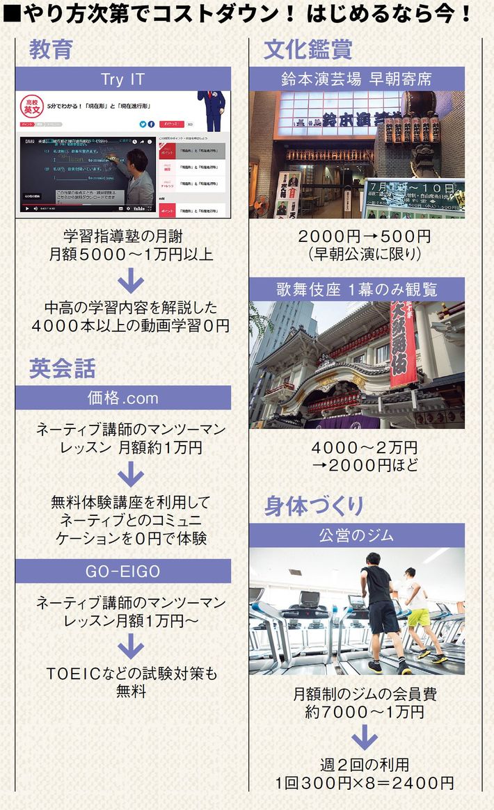 「歌舞伎座」の本格歌舞伎でも1幕だけ(全体の内容の4分の1程度)であれば、演目によるが半額以下の2000円程度で観覧できる。落語も東京・上野の「鈴本演芸場」で日曜の午前10時開演の早朝寄席であれば、1人500円とお得だ。これからの夏休みなどを利用して、持て余してしまいがちな時期に連れ出してみてはどうだろうか。