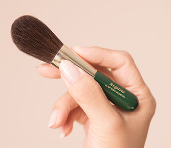 事務所を設立した際に立ち上げたオリジナルブランドのフェイスブラシは、従来のブラシを改良し、女性の手にフィットして使いやすいように柄を短くしたもの。「よい道具を使うとメイクの仕上がりに違いが出ます。だから道具はとても大切」と藤原さん。