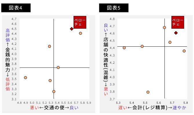 喫煙者は「タバコを吸えること」が、非喫煙者は「煙や臭いを気にしなくてよいこと」が、ベローチェの重要な利用動機になっているといえる。自由意見には「喫煙スペースがある程度広く確保されている」「喫煙席があり、その席数が多い」「喫煙者に優しい」 といった喫煙者のコメントと、「分煙がしっかりできている」「全面禁煙の店舗があること」「喫煙コーナーが完全に仕切られているのでニオイも全く感じない」「喫煙コーナーが完全に分離したのが気に入ってます」といった非喫煙者のコメントが寄せられた。喫煙者・非喫煙者の意見がトレードオフになっている。