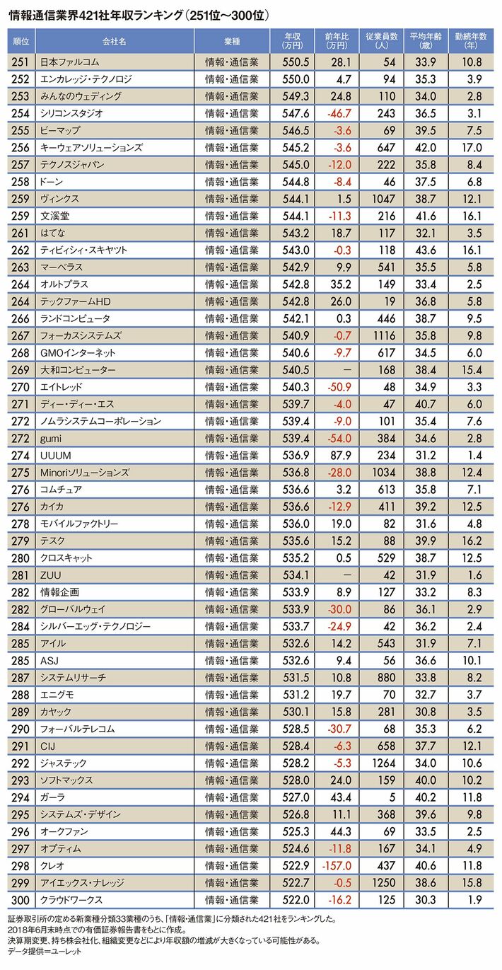 情報・通信421社「平均年収ランキング」 1位TBS1632万、28位ドコモ873万
