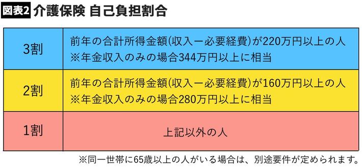 負担割合は、前年の所得によって、1割・2割・3割負担の3段階に分けられています。何割負担になるかは、毎年、自治体から送られてくる「介護保険負担割合証」で確認できます。