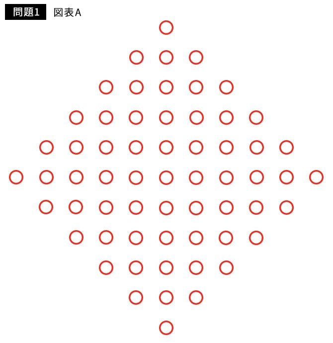 図表Aの○は全部でいくつあるでしょう。数えるのではなく、計算で答えを出してください。