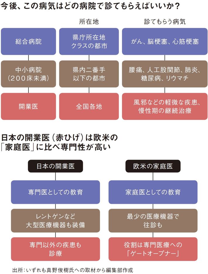 日本の開業医はもともと専門性が高いと申し上げました。がんや脳卒中など、急性期を脱した後に専門的なケアが必要な病気であっても、場合によっては治療を任せられる専門性を備えた「赤ひげ」が町中で開業しているのです。たとえば、長期にわたる術後の抗がん剤治療を、開業した元・がん専門医が診ることも珍しくありません。