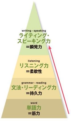 一般に日本人の英語力は、学校教育の土台の上に成り立っている。関先生によれば、基礎をつくるトレーニングは、「単語→文法・読解」の順で習う学校の英語学習を踏襲することが、日本人にとってはいちばん無理がない。リスニングとスピーキング、ライティングに取り組むのは、英語の基礎体力をしっかりと身につけた後でないと、「必ず壁に突き当たる」と関先生は強調する。