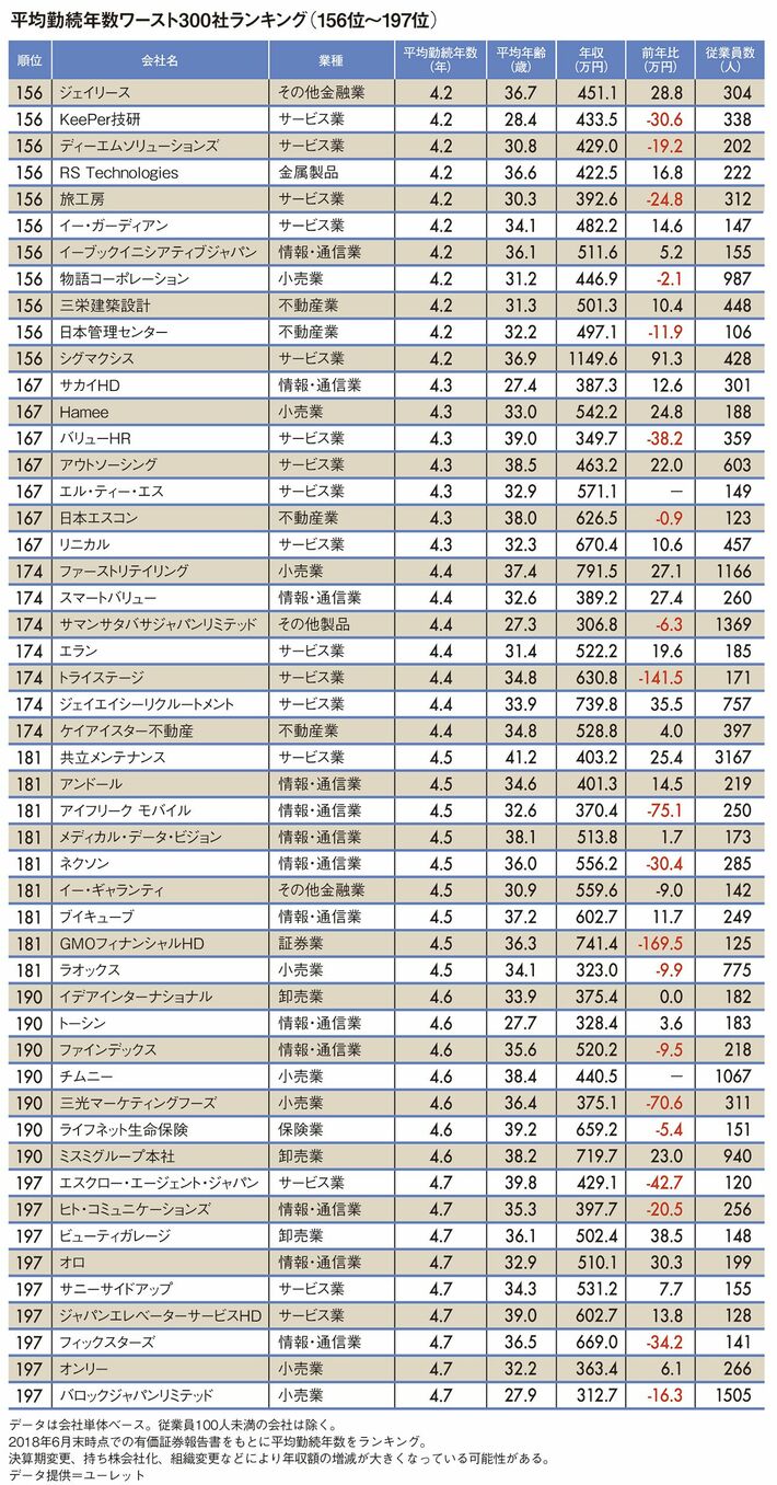 #ランキング #ワースト 2019/03/01 15:00 平均勤続年数"ワースト300社"ランキング 1位は1.1年の介護サービス会社 PRESIDENT Online 富谷 瑠美 +フォロー 記者/編集者 前ページ 1 2 3 4 5 6 7 次ページ 次ページ 1 2 3 4 5 6 7 関連記事 「社会人が転職したい会社」トップ300社 平均年収が高い"トップ500社"ランキング 平均年収が低いワースト500社ランキング ランキング 1位 だから小泉八雲は「知事のお嬢様」を選ばなかった…朝ドラ・セツの「恋敵」が起こした前代未聞のスキャンダル ランキングをもっと見る キャリア #ランキング #ワースト #勤続年数 #働き方