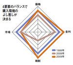 図は2004年から09年までの四半期ごとの、首都圏におけるマンション価格の推移。ぱっと見たところ、残念ながら、巷で耳にするほどの急激な価格下落は見てとれない。07年以前と比べると、高止まりといってもいい水準だ。