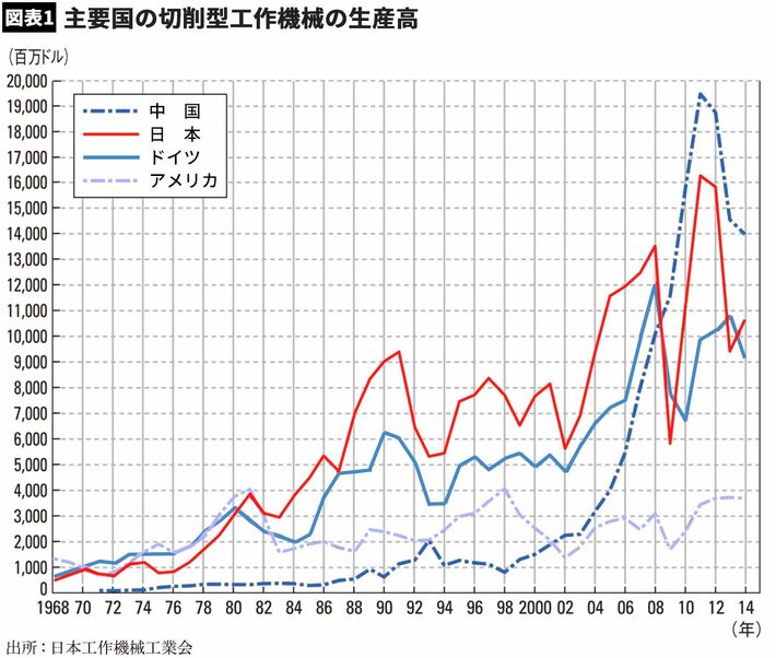 その旺盛な公共投資やインフラ開発に後押しされて、中国の工作機械の生産高は世界一となったのである。