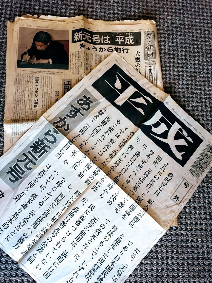 実は私は、「平成」が発表された翌日の朝日新聞(1989年1月8日朝刊)を取り置いている。当時、中学生だった私は、重大ニュースの新聞を収集する癖があった。