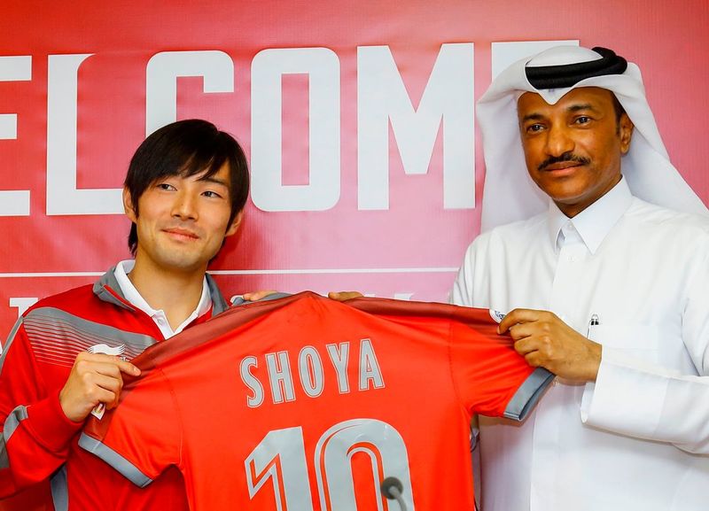 カタールのアル・ドゥハイルに移籍した中島翔哉選手(写真左。2019年2月5日、カタール・ドーハ)(写真=AFP/時事通信フォト)