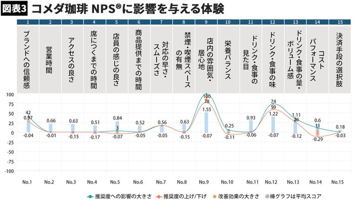 最後にコメダ珈琲店です。コメダは前回の調査では2位でしたが、今回はマイナス19.7%とトップになりました。NPSもマイナス23%から改善しています。