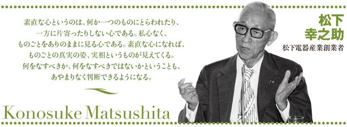 「素直な心というのは、何か1つのものにとらわれたり、一方に片寄ったりしない心である。私心なく、ものごとをありのままに見る心である」