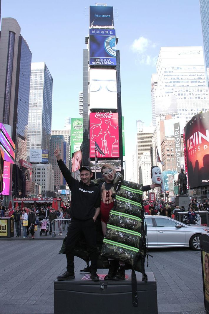 4月6日、独創的なメイクと衣装のくっきーさんが、マンハッタンのど真ん中、タイムズスクエアにやってきた。演出したのは、レディー・ガガさんのクリエイティブ・ディレクターを務める、ニコラ・フォルミケッティさん。