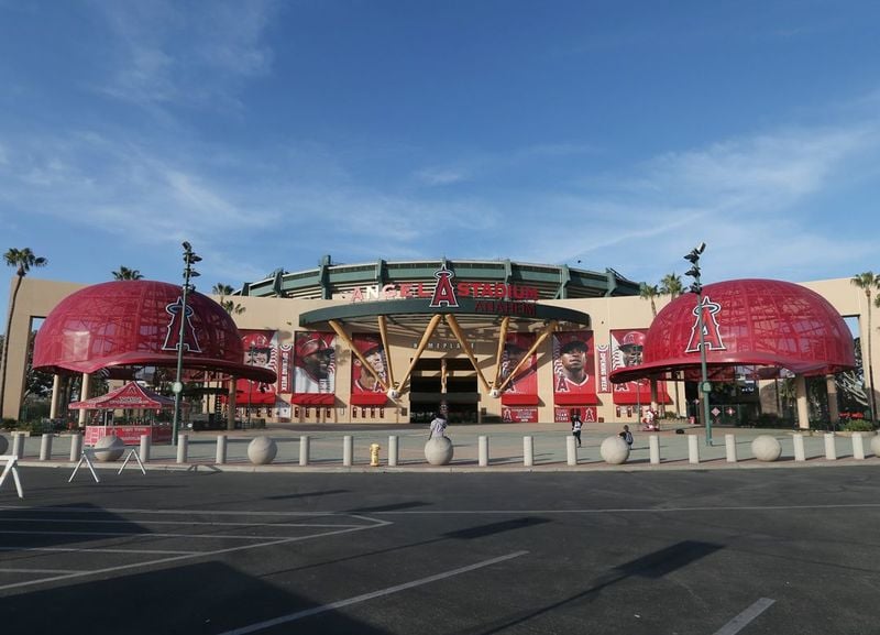 アナハイム球場は、ディズニーランドのある街アナハイムから車で10分ほど。近くには、おしゃれなショッピングセンターも、おいしいハンバーガーやスペアリブのレストランもある。広大な駐車場に車をとめ、正面入り口に近づいていくと、真っ赤なヘルメットの巨大オブジェが目に入る。