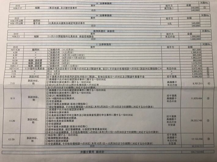 別の資料にある弁護士費用の内訳では、事務所側が請求した案件(顧問料を除く)が11件あった。中でも、協会が職員に訴えられた2件の裁判に関する費用のほか、職員や会員との度重なるトラブルへの対応費用が際立って目立つ。空手協会が対応に1億円も投じている裁判やトラブルとは、一体どのようなものなのか。
