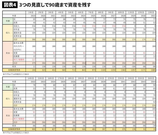 以上の見直しを行った結果が図表4です(今回の改善案を実行したことで変化のあった箇所は赤字で表記)。3人とも、「これでやってみたい」というので、改善案を実行することを決めて、2カ月後に再び会う約束を交わしました。