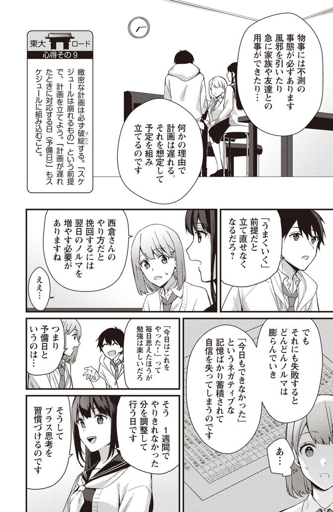 ちなみに東大生は、この「余裕を持って行動しつつも、ギリギリの計画を立てる」というのが非常にうまい人たちです。大学の学内テストの点数も、余裕を持ちながらも単位が取れるギリギリの点数を狙い、そして最小限の努力量で単位を獲得する人が多いです。多少何かあっても大丈夫なように準備しながらも、過度な準備はしないで器用に計画を達成していく……そういう器用さがあるから、多くの科目の勉強をこなし、偏差値が一番高い大学に合格できたというわけです。