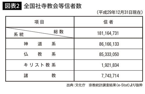 すごい数ですね。これでは、政治家が敵に回したくない相手でしょうね。信者数も日本の総人口を上回っているようです(図表2)。