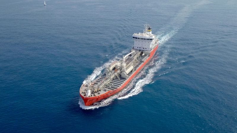 ホルムズ海峡で攻撃を受けたタンカー。自国のタンカーをいかに護るか。(時事通信フォト=写真)