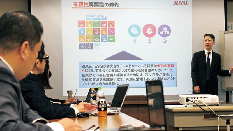 【菊地】中期経営計画のスパンで取り組んだのでは、3~4年周期問題は解決できません。そこで、10年間の長期ビジョン「ロイヤルグループ経営ビジョン2020」を掲げました。増収増益体質にするために、ビジネスモデルをゆっくりでもいいから転換していくことにしたのです。まずはグループ全体の方向性を示しました。それがグループビジョンで、柱は2つありました。1つは「お客様の満足」を最大の目標とし、時代の変化にしなやかに対応すること。もう1つは、日本で一番質の高い“食”&“ホスピタリティ”グループを目指すこと。