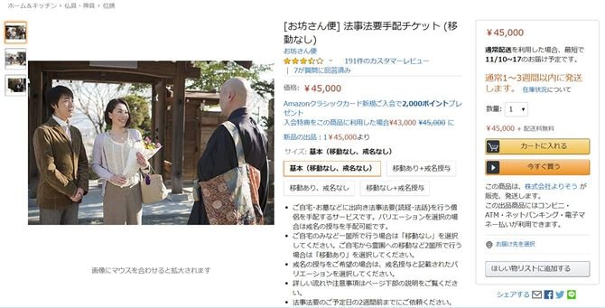 ※編集部註:「よりそう」は10月24日、僧侶派遣事業「お坊さん便」のアマゾン出品を終了すると発表した。(10月24日16時10分追記)