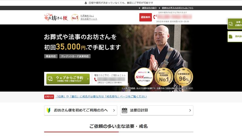 インターネットサイトを通じた僧侶派遣業が変革期を迎えている。