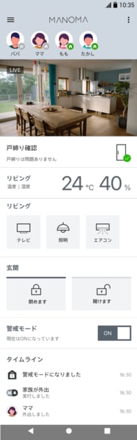 2018年10月にサービスを開始したMANOMAだが、これまでにもその使い勝手を着実に充実させている。例えば、すでにアプリのユーザーインターフェースの全面リニューアルを実施。アプリを立ち上げただけで家族や家の状態がひと目で把握できるデザインへと進化させた。また現在、「スマート家電リモコン」を連携させてエアコンやテレビ、照明を声で操作することもできるようになっている。
