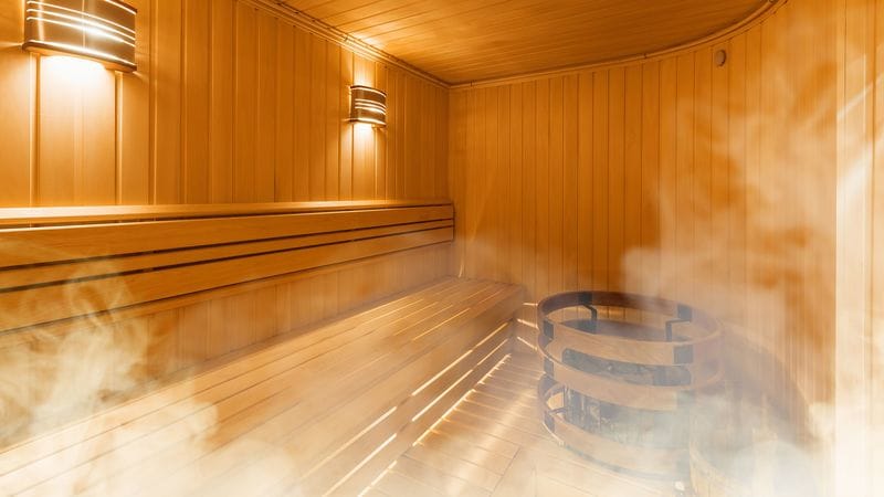サウナ室に入ると、身体は熱い空気に包まれてじわじわと汗が出てくる。体内の老廃物が汗とともに排出され、身体の物質交換が進んで疲労回復に繋がる。