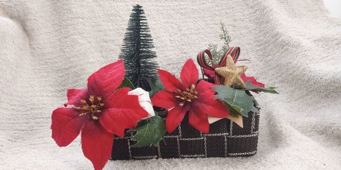 100円ショップにはツリーやリースもあるが、さすがに大きさに限界がある。手のひらサイズのツリーやスノードーム、マスコットだと、そのまま飾るといまひとつ迫力がない。こうしたものは、つるで編んだカゴや木製のボックスなどを一緒に買って、その中にまとめて飾る「箱庭式」にするのはどうだろう。箱やカゴにまとめる際は、ツリーやマスコットなど一つメインになるアイテムを決め、その周りに小さなオーナメントを配置する。一緒にキャンディーや個包装のチョコとクッキーなどお菓子を盛り込んでも子供が喜びそうだ。