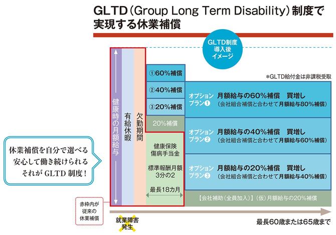 (※)GLTD(Group Long Term Disability)とは、病気やけがで働けなくなったときに経済的に支援し、社会復帰を後押しする制度。