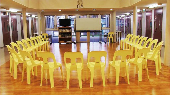まず明るい。雰囲気だけではなく、白い壁と木目の床がライトに照らされ、爽やかなのだ。受刑者が着ている服も黄色のポロシャツにチノパンで、監視するのはICタグとCCTVカメラ。部屋は個室で窓もある(普通はないのだ!)。全員丸刈りじゃなければ、ここが刑務所だとは思えない。従来の刑務所とは違う、新しいタイプの施設であることが伝わってくる。