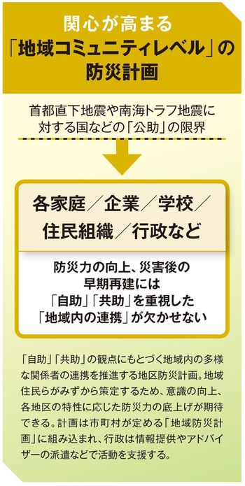 例えば、屋内にいる要支援者を無我夢中で助けているうちに津波の犠牲になった──。そんな事例が多く報告されていることから、避難者はできる範囲で支援する「ギリギリの共助」を住民同士で話し合っておくことが大切だ。地区防災計画は、こうした過去の災害の教訓を地域に根付かせる動きとして期待されている。