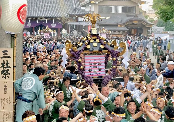 対照的に、浅草では毎年5月開催の「三社祭」は中止をせず10月に延期を決めると共に、その実施可否も8月31日までに判断すると公表している。浅草神社と共に祭りを実行する浅草神社奉賛会の関係者は、「5月から10月への延期も3月末に決めた。毎年このくらいで準備しているから、10月開催も8月末に判断すれば(実施でも延期でも)間にあう」と言う。