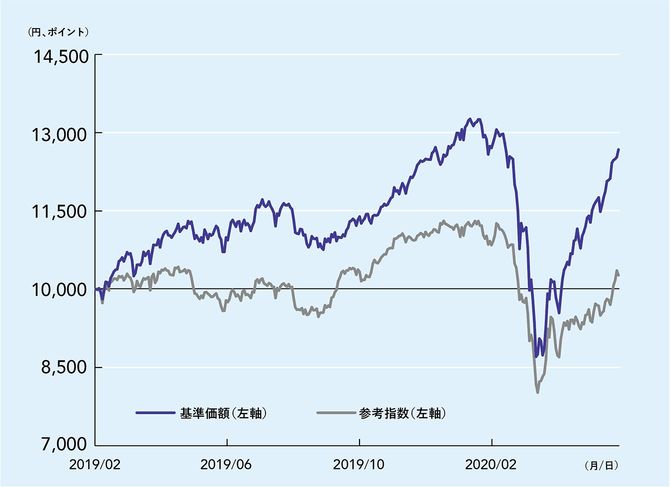 【古賀】運用チームは4人で、うち3人は国内株式の運用に20年以上携わっており、もう1人はベンチャーやスタートアップ企業の豊富な知見を持っています。同じチームで運用している機関投資家向けファンドは2003年7月に設定し、2020年5月末現在その価格は設定時の約14倍となっており、市場平均を大きく上回る実績を残しています。