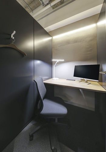 「自然素材を多く取り入れ、心地よい空間を実現。スペースも個室ブース席、オープン席、会議室などを用意しました。各種セキュリティ対策にも力を入れながら、ウェブで利用者の入退室管理を行えるなど、労務管理のしやすさにも気を配っています」