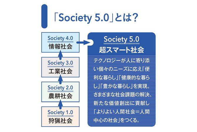 【日比野】人類がたどってきた狩猟社会(Society 1.0)、農耕社会(Society 2.0)、工業社会(Society 3.0)、情報社会(Society 4.0)に続く第5の社会。いわば「超スマート社会」です。