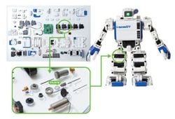 サーボモーターの内部を公開! クラッチバネ(左下写真中央)が、ロボットの関節を動かす役目を果たす。このバネは、セイコークロックの技術が随所に盛り込まれている。大きさはほんの数mm、指先に載るほどの小さな部品だが、「材質や焼き入れなどがノウハウの固まり、真似しようと思っても真似できない」(渡辺)。アイソボットの滑らかな動きを演出する“コアの技術”はまさに「日本の技術」だ。