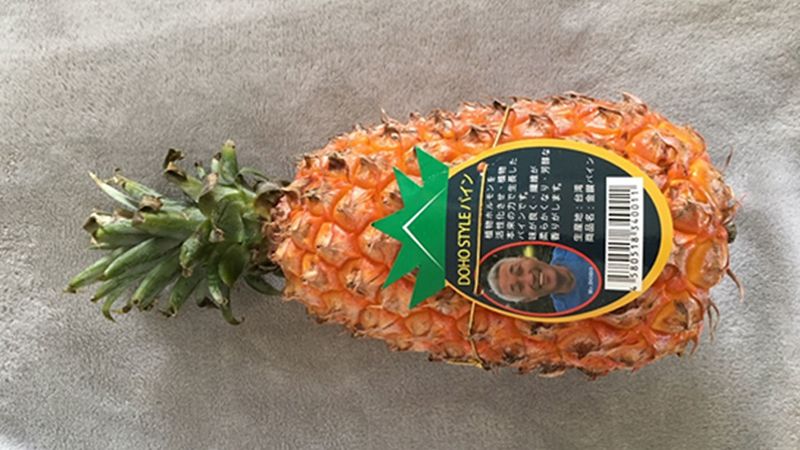 ラベルにおじさんの顔がついている。「Mr.DOHO」……ミスター・ドホ? おじさんが気になり、「Mr.DOHO パイナップル」でググってみた。道法正徳(どうほう・まさのり)さんという方らしい。その道法氏が監修した家庭菜園の本が出ているというので、書店に探しに行ってみた。