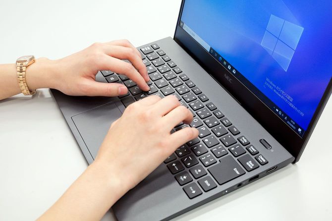 そして、筐体の幅いっぱいにキーボードを配置したことで「15.6型と同等のキーの打ちやすさ」を確保しているのもポイントだ。リアルタイムのコミュニケーションツールとしてチャットが積極的に活用されるなど、スピーディーかつ正確に文字を入力しなければならないシーンは明らかに増えた。Webミーティングを行っている間にも、資料を更新したりメモをとったりと、キーを打たなければならない場面は頻繁にやってくる。小さな入力ミスも、積もり積もれば大きなストレスとなって仕事の効率に響く。