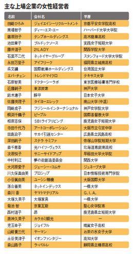 主な上場企業の女性経営者