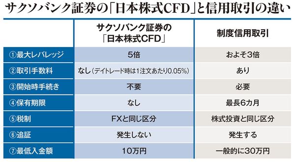 CFDの大きな魅力はレバレッジを効かせられる点である。その点、サクソバンク証券の日本株式CFDの最大レバレッジは個人が5倍、法人が10倍と信用取引の約3.3倍を大きく上回る。少額でもポートフォリオにバリエーションを持たせることができ、分散投資を充実させるのにも有効だ。