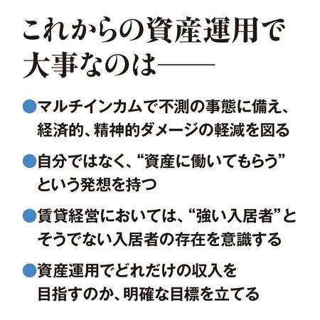 「副業や兼業といった方法もありますが、自ら労力をかけるとなると時間的な制約もあります。理想は時間というコストをかけずに済む仕組みをつくること。よくいわれるとおり、“資産に働いてもらう”という発想が大事になります」