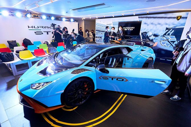 日本での新拠点となるこの「THE LOUNGE TOKYO」で、去る11月にランボルギーニの最新のスポーツカー、「ウラカン STO(スーパートロフェオ・オモロガータ)」が発表された。