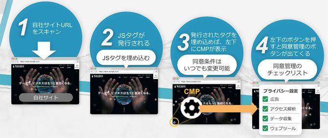【久野】クッキーの利用に関するユーザの同意管理プラットフォーム「Qonsent(コンセント)」で、ユーザがWebサイトを訪問した際、広告への利用やアクセス解析など目的ごとに、クッキーの取得・利用について同意するかどうかを選択できる仕組みです。「Qonsent」によってWebサイトを運営する企業は、ユーザからの同意の取得状況を容易に管理できるようになる。改正個人情報保護法にも対応した形で、個人データを取得、管理することが可能になります。