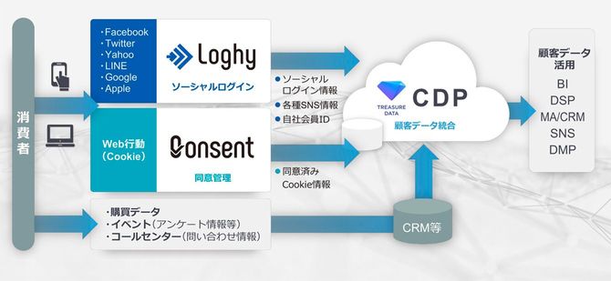【町田】さらに「Loghy」「Qonsent」を通じて収集したデータと、購買データをはじめその他のデータをTreasure Data CDP上で統合して、有効活用するノウハウも持ち合わせているのがインキュデータの強みですから、単にデータ基盤の再構築を支えるだけでなく、データ活用に関わる全てをワンストップでサポートさせていだきます。
