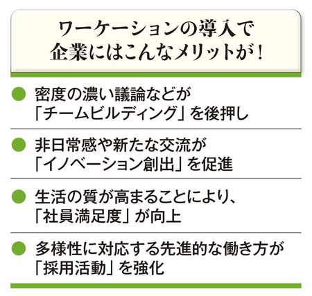 柔軟な思考や活発な議論を後押しするワーケーション。その取り組みはコロナ禍で新たな価値を持ちつつあります。企業の多くは従来、「従業員が共に同じ時間を過ごす」ことで組織の求心力を維持してきましたが、昨今の在宅勤務はこれを崩す負の側面があります。これに対し、ワーケーションという濃厚な「リアルな場」は、組織の健康を維持する「サプリメント」のような効果が期待できるのです。