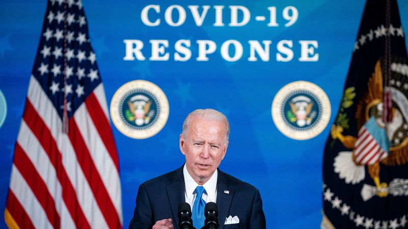 米製薬大手ジョンソン・エンド・ジョンソン(J&J)が開発した新型コロナウイルスのワクチンについて、1億回分の追加購入を表明するバイデン大統領=2021年3月10日