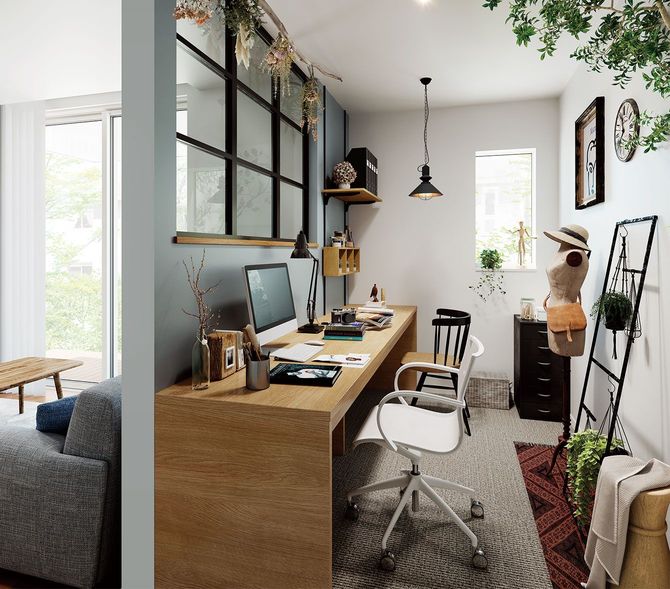 仕事には集中したいけれど、子どもの様子もわかるようにしたい、というご家庭には、大和ハウスのもう一つの提案「つながりワークピット」がおすすめだ。
