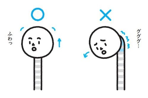 では、どうすればいいのか。頭を背骨や「姿勢の急所」の上に、ふわっと載せればいいのです。